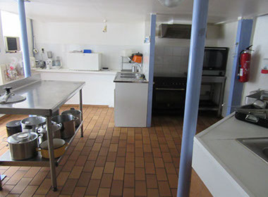 Le gîte du Moulin est équipé d'une cuisine aux normes Jeunesse et Sport. Pour chaque stage, un cuisinier prépare tous les repas à partir de produits frais locaux. Nous avons tissé des partenariats avec les producteurs de la région que nous rencontrons sur le marché de Langogne et auprès de qui nous nous fournissons majoritairement. Nous veillons à l'équilibre diététique des repas et respectons les régimes alimentaires particuliers de chaque enfant.